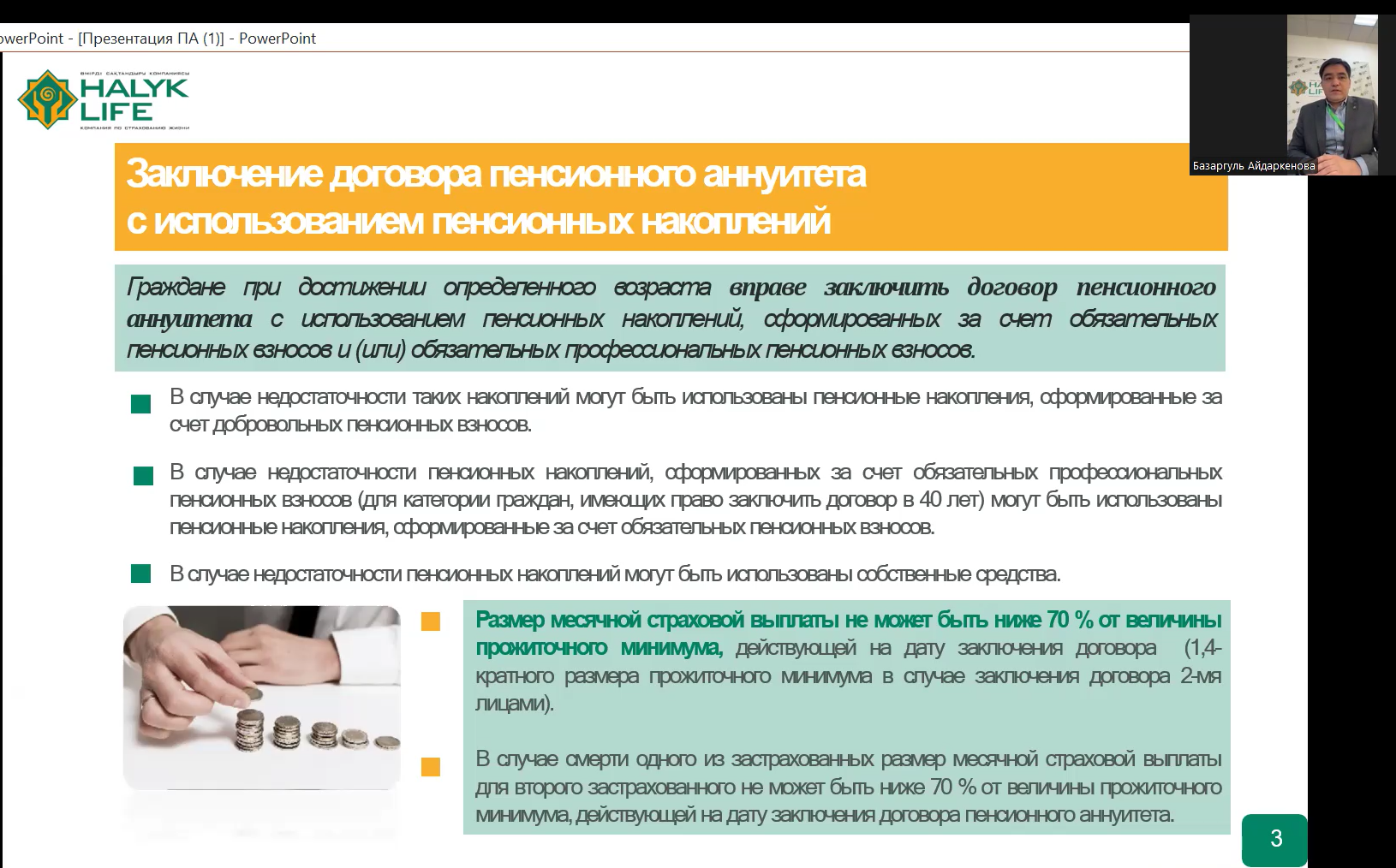 «Халық-Life» АҚ бас менеджері Руслан Құрманғалиев зейнетақы аннуитеті туралы ақпарат берді. Бағдарлама Қазақстан нарығында 15 жылдан астам уақыттан бері жұмыс істеп келеді және азаматтарды әлеуметтік қорғаудың сенімді құралы ретінде танылды. Ол зейнетақы төлемдерін белгіленген мерзімнен бұрын алуға мүмкіндік береді: ерлер зейнет жасына шыққанға дейін 8 жыл бұрын, әйелдер – 10 жыл бұрын жинақтарын пайдалана алады.
