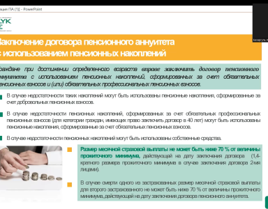 Зейнетақы аннуитеті Бірыңғай жинақтаушы зейнетақы қорындағы қаражатты сақтандыру компаниясына аударып, өмір бойы ай сайынғы төлемдерді кепілді түрде алуға мүмкіндік береді. Бұл тұрақты табыс пен болашақтағы қаржылық тәуелсіздікті қамтамасыз етеді. Бағдарлама Қазақстан Республикасы Ұлттық банкінің лицензиясы негізінде жүзеге асырылады және Қаржы нарығын реттеу және дамыту агенттігі тарапынан реттеледі. Барлық клиенттерге мемлекет кепілдігі беріледі, ал бағдарлама талаптары халықаралық стандарттарға сәйкес.