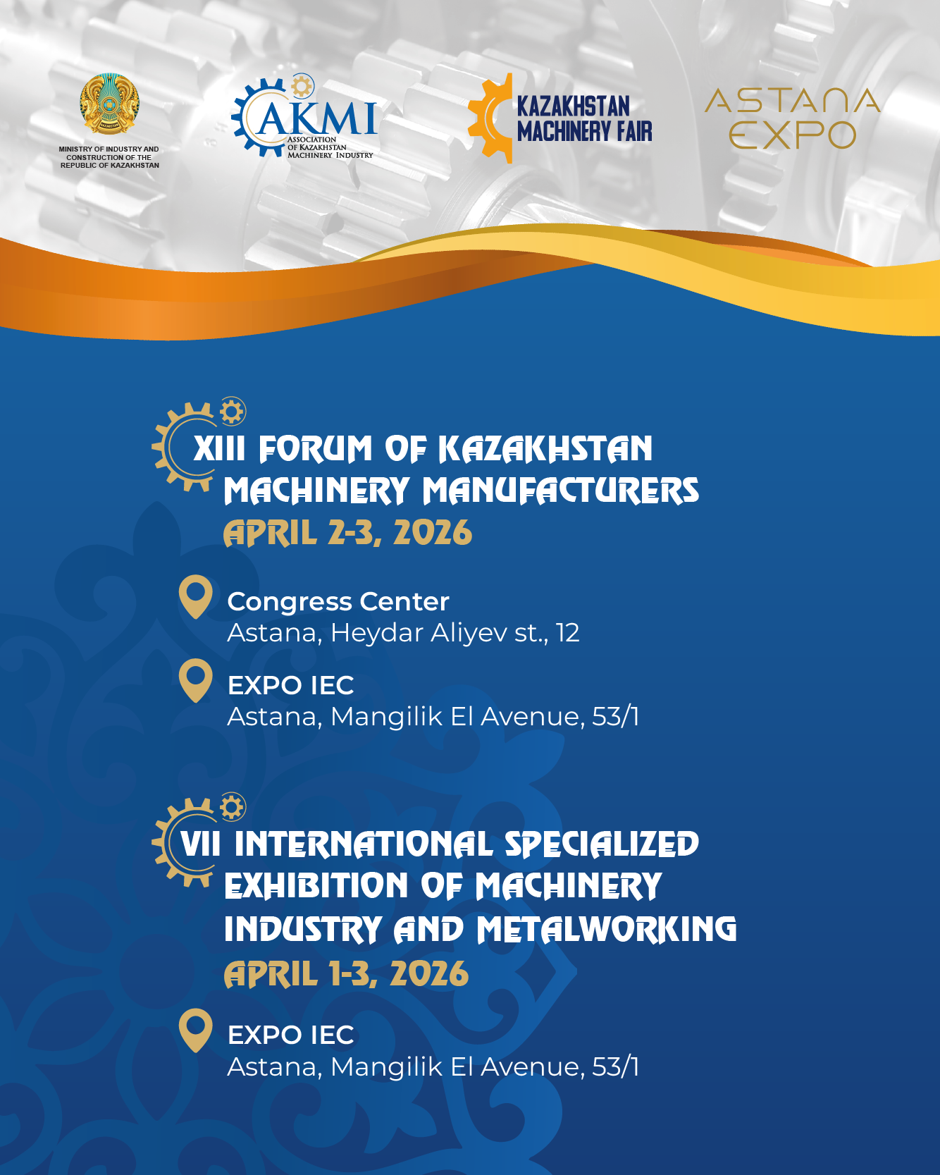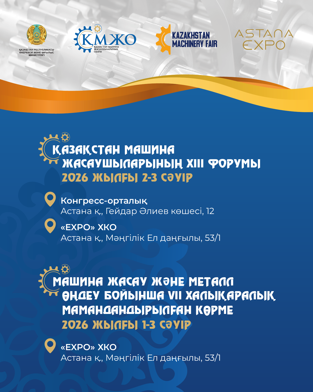 Жылдың басты салалық оқиғасы – Қазақстан машина жасаушыларының XIII форумы 2026 жылғы 2–3 сәуірде Астанада өтеді